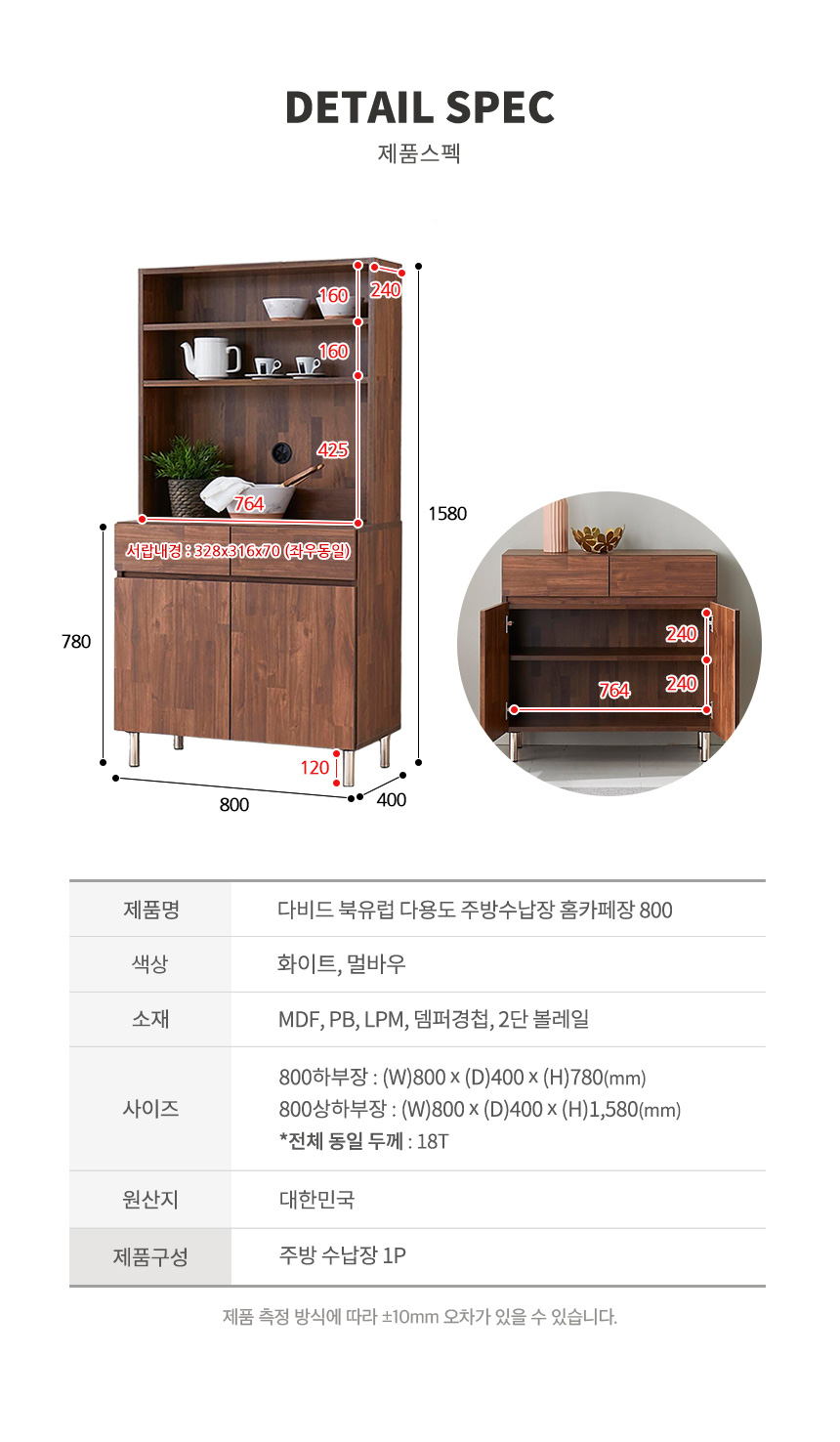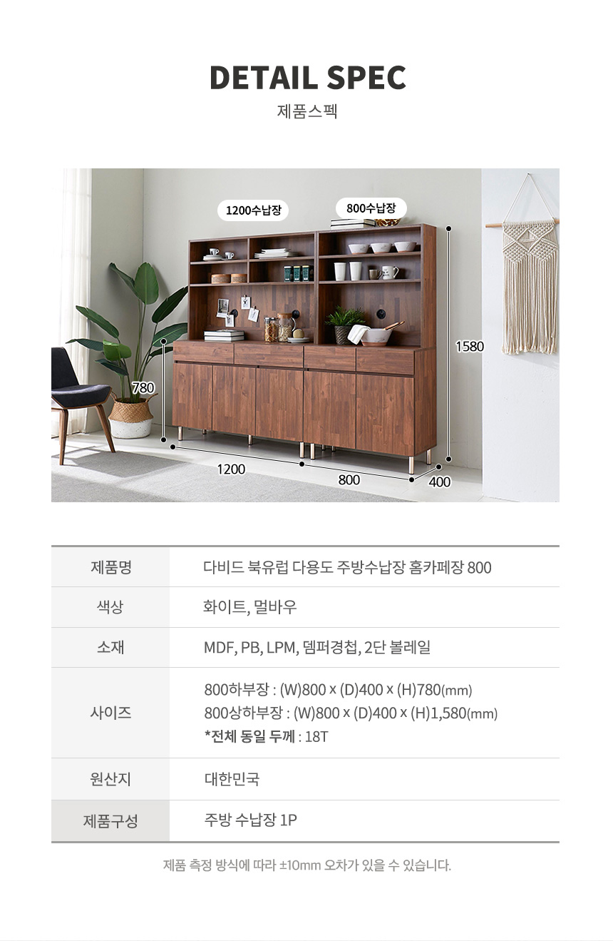 david 홈카페 부엌 수납장 주방 상하부장 800
